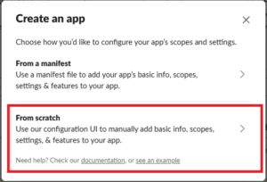 画面右上にある[Create New App]ボタンをクリックし、出てきたポップアップで[From scratch](最初から作る)を選びます。