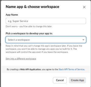 Fail2Notify(ここに入力した名前で通知が届きます) - Pick a workspace…:通知を送りたいSlackワークスペースを選択