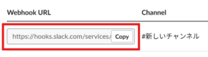 元の画面に戻ると、表の中にWebhook URL(https://hooks.slack.com/...)が発行されています。 これをコピーして、WordPress側の設定画面に貼り付ければ完了です!